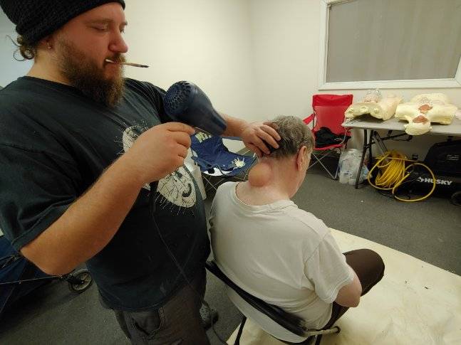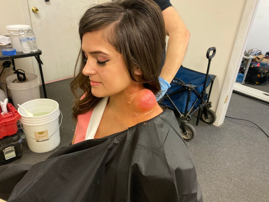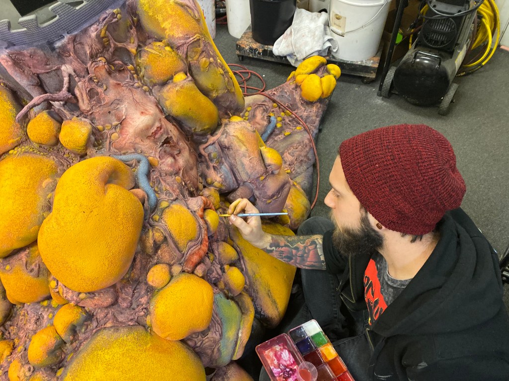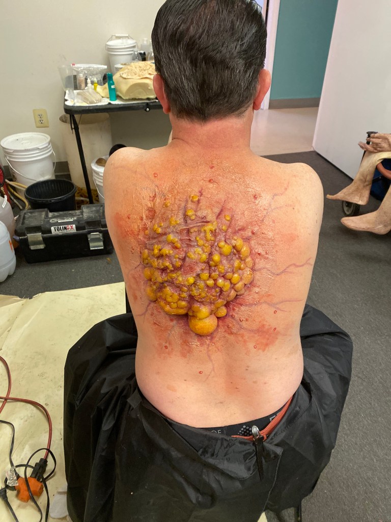 TolinFX Team: Steve Tolin (SPFX Coordinator, MUFX Coordinator, puppeteer), Myself (MUFX Supervisor, SPFX Supervisor, Lead Sculptor, Cyst Monster suit performer), Antonio Grassano (onset SPFX Technician, MUFX Technician, puppeteer), Andrew Sands(SPFX Consultant), Mike Lachimia (Foam Runner, Mold maker), Chris Fern (Creature design illustrator).