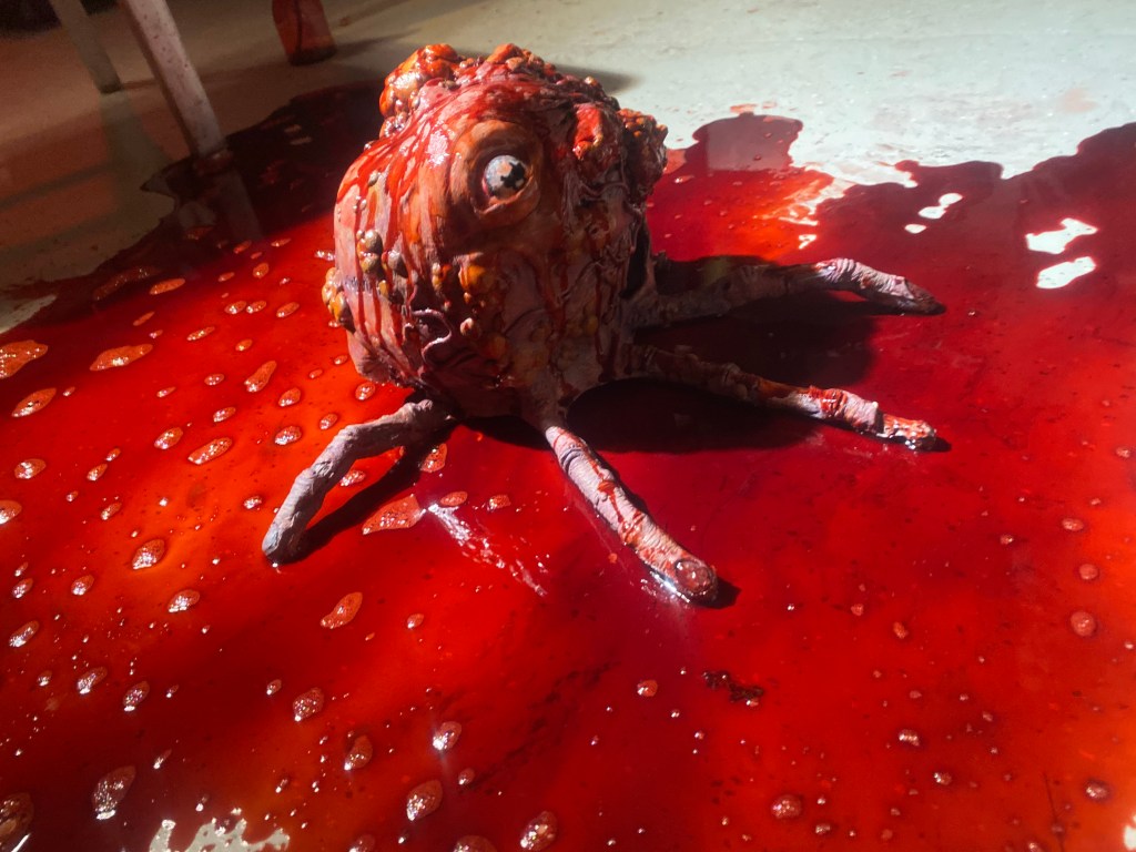 Cyst was a fun little feature film Directed by Tyler Russell that I had the pleasure of working on with Tolin FX. The majority of everyhting was fabricated in house. For this I sculpted various sizes of Cysts, Cyst Skull stage, and lead the fabrication of the Cyst monster suit before finishing it onset and then performing it. It was fabricated out of various types of foam in multiple layers. The details of the suit were sculpted with foam latex right onto the form and then baked out in a makeshift oven. We had many sizes of cyst prosthetics, many stages of the monster, atmosphere, some make shift explosions and various liquid launching using airpowered squibs from Squib FX, sparks, lots of blood and pus/slime, and of course a lot of fun!