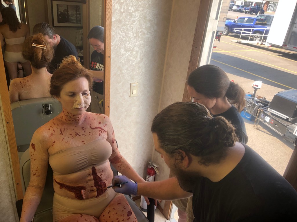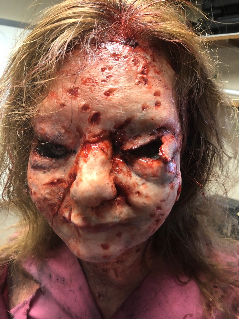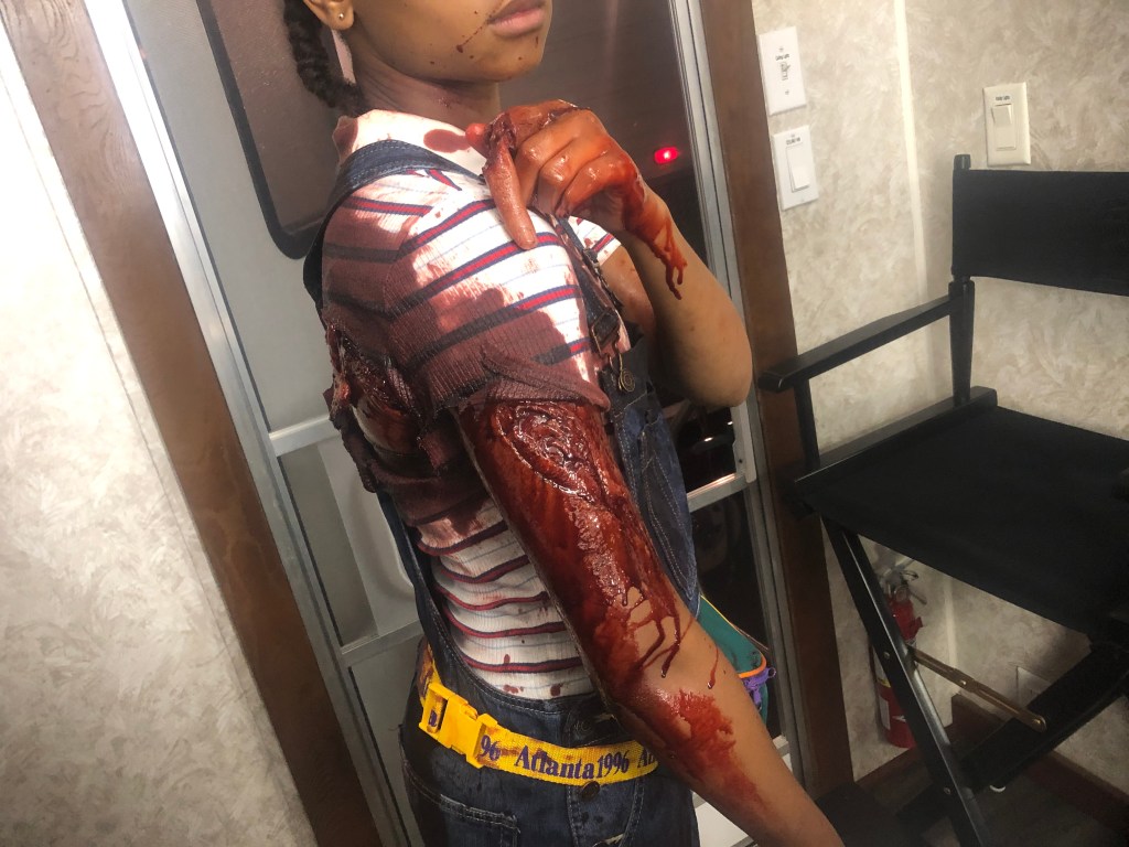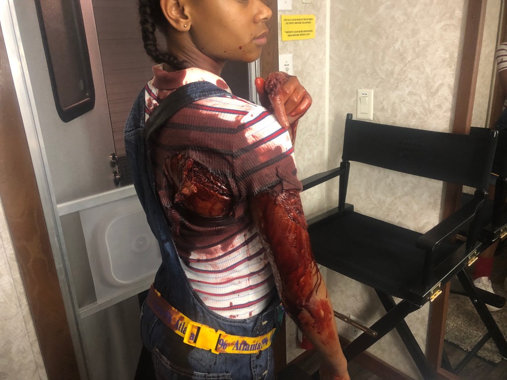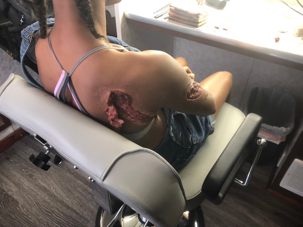 We at Tolin FX had the task of doing some makeup fx for some of the vistims in the show. Recreating some of the horrible events from the 1996 Olympic Park bombing and the Emily Lyons abortion clinic bombing. We did a full body transfer makeup on actress Daina Griffith and her double who portrayed Emily Lyons. We did some prosthetic appliances on actress Soleil Patterson who portrayed bomb victim Fallon Hawthorne. We created a mutilated torso bomb victim. We created a fake rattlesnake and snake bite prosthetic as well.